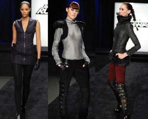 There’s actually only two designers and one spot. Emilio and Seth Aaron are shoo-ins, so the competition is between Mod Mila and Jaunty Jay. But, before the run-off, Tim makes his pleasant-yet-awkward home visits. He visits Seth Aaron in Vancouver, Emilio in New York City, Mila in Los Angeles, and Jay in San Francisco. These visits are pleasant because it is Tim Gunn. Yet awkward because the contestants’ families are invited, and you get the feeling there’s bound to be some uncomfortable silences (and trampoline jumping according to Movie Line). Tim was pretty feisty during his travels and didn’t let any designer off the hook. He told Seth Aaron to re-conceptualize; he told Emilio that his clothes lacked sophistication and looked old; Mila’s collection looked conservative and matronly, and Jay’s was gimmicky student work. Ouch, ouch, ouch, and ouch.