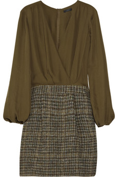 This J. Crew silk and wool dress isn’t perfect for fall, right? It probably wouldn’t look good with (black or brown) opaque tights and boots. It isn’t the grown-up glamour I talked about for my fall wardrobe. And, I’m sure it wouldn’t look good with my black booties, my new oxfords, or these Tory Burch riding boots.