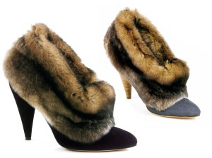 I joined the bootie bandwagon with a safe pair of black ankle boots last winter, but I hope to take it up a level with an extra burst of color this year. Since it’s not a trend that will likely stand the test of time, I’m not inclined to invest too much of my limited fashion income in this particular pair. But just look at this open-toed mustard version from Gwen Stefani’s line, L.A.M.B. The skinny high heel! The scale-like mini ruffles! If it weren’t for the $400+ price tag, it might be a match made in footwear heaven for Miss M and these very special booties.